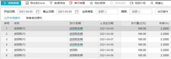 Wind提供数据显示,4月6日累计200亿元逆回购到期,本周(4月5日至4月9日)累计500亿元逆回购到期。